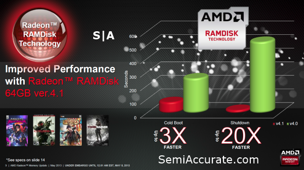 The old version of Radeon RAMDisk had a negative impact on start-up and shut down times. But with the move from v4.0 to v4.1 this issue is gone thanks to what AMD calls enhanced load and store. Better yet the program is now capable of updating without interrupting the service that it provides.