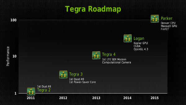 Going back to the GTC presentation, we have Tegra 4 for 2013, Logan for 2014, and Parker for 2015. Parker is the first Project Denver based part, and there is one more generation between the current Tegra 4 and Denver. If the merry marketeers on the San Tomas Freeway don’t change the numbering scheme, that would mean that Parker/Project Denver is Tegra 6 just like we said.