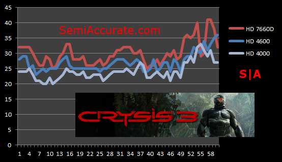 In Crysis the gains that the HD 4600 bring are not as impressive, but they are still an improvement over the HD 4000.