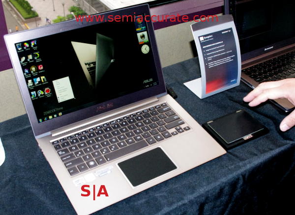 The first thing that Synaptics was showing off is the Clickpad 2.0, the new version of the tried and true Clickpad. This new version is thinner, <2mm vs the older unit’s 3-4mm, stiffer, and crucially Synaptics does all the mechanicals instead of the OEM. This should prevent violently awful implementations of an otherwise sound technology like the miserable Asus notebook this is being written on. If Synaptics can prevent notebooks like this from coming out with Clickpad 2.0, all we can say is hurry up guys and start at Asus.