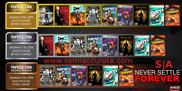 If AMD pays $5 or so per title, a lot of Bronze buyers would step up to Silver for $10 and Gold for $20. Registered owners could get an email with special $20 offers for one more title here and there too, loyalty programs are quite effective you know. Better yet about two years after a purchase, an email saying, “If you upgrade to a new AMD card in the next 60 days, you will get a bonus title on the next bundle for free” would be one heck of a nudge to many gamers, especially if it included the “New Hot WW7 Shooter Part 4: Return of the Guy You Killed Twice in Part 3!” they were drooling over the release of. The rabbit hole only gets deeper from there, hopefully it will only be used for good.S|A