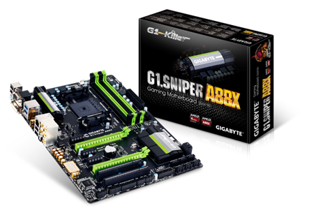 There are seven boards just announced, the G1.Sniper A88X , F2A88X-UP4 , F2A88X-D3H, F2A88X-HD3 , F2A88XM-D3H , F2A85XM-DS2 , and F2A88XN-WIFI, quite the complete range. Of the boards there are two that stand out, the G1.Sniper A88X and the F2A88X-UP4 both of which are from the top-tier ranges of the Gigabyte lineup.