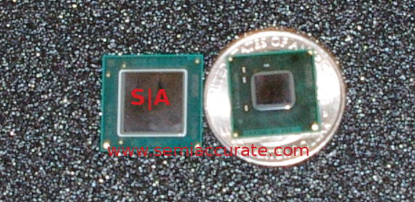 The promise was a sub-Atom device to compete with, well nothing directly but it does address a massive market that by unit volume could potentially dwarf phones. There were no specs, dates, device details, process tech, ISA, or even die size mentioned. When we hunted down a chip it looked like this.