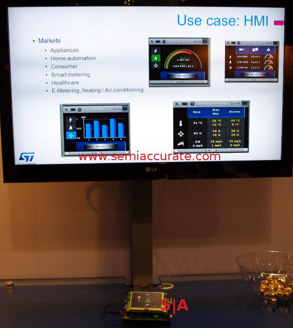 The other half of the Java announcement is the porting of IS2T’s GUI Pack Widget Libraries to the STM32 line of devices. Want a pretty dial for the color touch screen on your upcoming uber-washing machine? This would make life a lot quicker and shorten the time to market quite a bit, if nothing else it sure beats having to code that stuff yourself. All you have to do now is convince yourself that appliances need fancy color UIs and touch screens instead of a few knobs, but that is not ST’s problem.