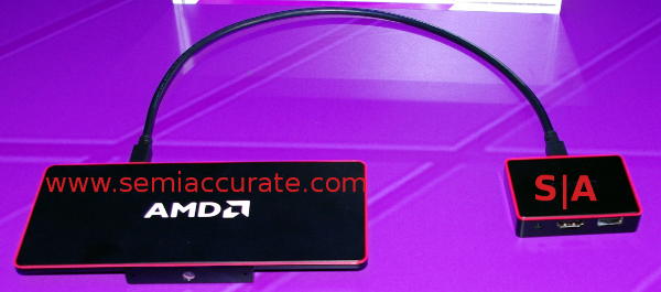 First up we have two docks for AMD’s tablet, part of Project Discovery. The specs on the tablet are normally what we tell you about but those were totally lacking, the only thing we could find on the net about it was that it is 4K display capable and powered via DockPort. SemiAccurate thinks DockPort is a good idea and the recent news that VESA adopted it as a standard just confirms the potential.