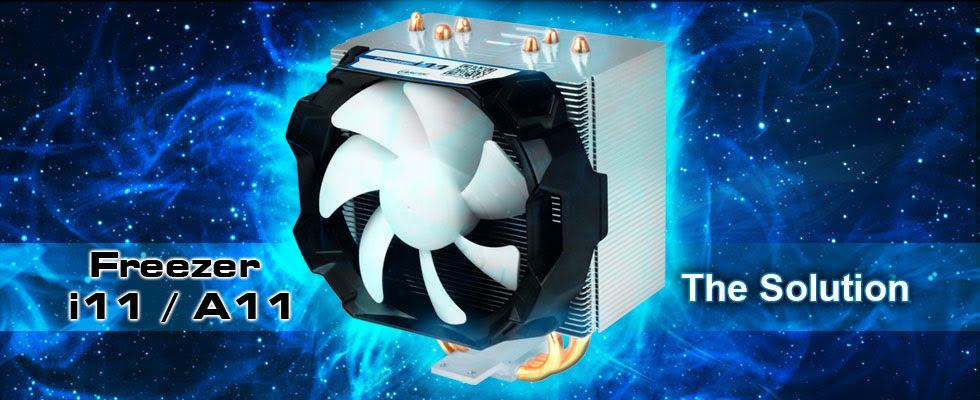 The heatsink artists at Arctic cooling announced a pair of new additions to their low-end CPU cooler line up in the form of the Freezer i11 and A11. As you’ve probably already guessed the i11 is the Intel compatible version and the A11 is the AMD compatible version. Both of these coolers have support for TDPs of up to 150 Watts using a three heat pipe design with an all-aluminum 45 fin radiator. Like Arctic’s previous offerings the i11/A11 come with a single 92mm fan that uses rubber mounts to reduce vibration.