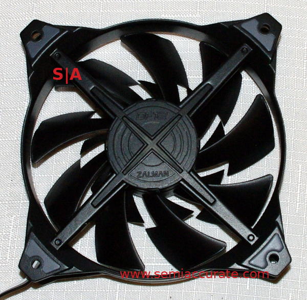 More interesting is the new ZM-DF12 fan, or at least the blades on it. The normal blades are notched and a little mini-blade is slotted in between pairs of the larger blades. Does it work better to eliminate dead spots in the middle, quiet things down, or prevent zebra attacks? Who knows, I am not enough of an aeronautics geek to have a clue but it sure looks cool. There is a very dim LED in the middle too with just enough light to make the X glow softly, a nice touch.