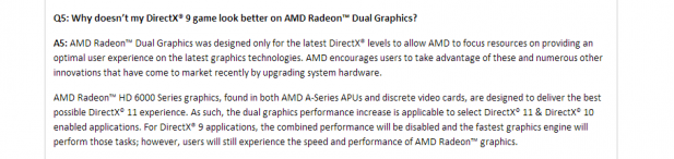 AMD’s Dual Graphics has never really worked like users hoped it would and after three generations of the technology it seems that only a complete conversion of video games to DirectX 10 and above rendering engines can really validate the usefulness of this technology. Of course that transition may never fully happen so AMD’s Dual Graphics is stuck in an awkward limbo land where it offers users the least desirable traits of both low-end discrete graphics solutions and multi-GPU configurations.