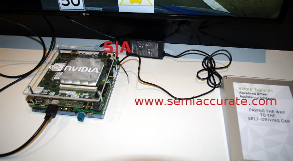 For the math averse, 5 * 12 = 60, so the power supply for this K1 demo is a 60W feed. If that number makes your jaw drop, you do get the right picture, this system has a massive draw. To be fair to Nvidia, the K1 demo almost assuredly does not pull anything near the 60W maximum for the power supply, it was warm to the touch but not blisteringly hot. In short it is pulling enough power to warrant its size but nowhere near the 60W max. Based on this and other information, SemiAccurate estimates a 35-40W draw for the entire system.