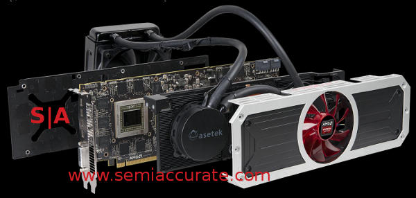 All that said no one at SemiAccurate has ever seen one, heard one, or has a clue about how well it works in the real world but some people we know have. AMD didn’t provide any numbers in the slide decks but we wouldn’t repeat them without verification anyway. That said it should perform like two Hawaii’s in Crossfire with a little overhead loss from PCIe width balanced by the minor speed bump.