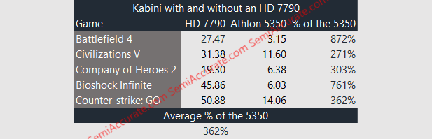 Looking at the results themselves we can see that the HD 7790 offers a completely different world of GPU performance compared to the Athlon 5350’s paltry R3 graphics. For first person shooters the addition of a discrete GPU turned our entry-level miniITX box into a veritable gaming machine. For a core component (APU + Mobo + GPU) cost of ~$200 our combination of an Athlon APU and discrete GPU has demonstrated some surprisingly capable performance numbers.