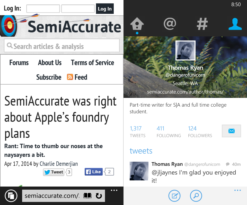 Internet explorer saw a pretty big update with Windows Phone 8.1 from version 10 to version 11. Visually there aren’t many difference between the new and the old IE. But performance seems a bit better, and compatibility is markedly improved. Mobile browsers have never really had a good track record with website compatibility, but with IE 11 on Windows Phone 8.1 every site we tried was rendered properly. There is still no text reflowing, but I didn’t feel like that was necessary at any point while I was testing it.