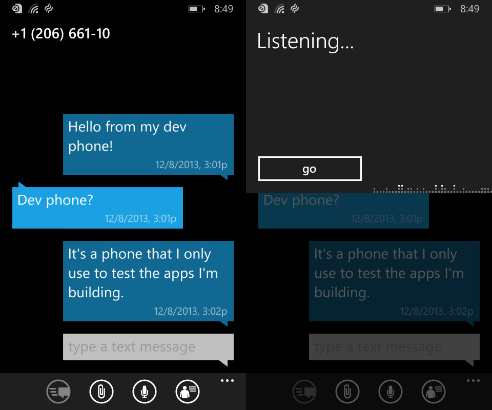 The text messaging app is actually very similar to the old Windows Phone 8 app. Visually it looks almost the same, which is fine because the app already looked great. The only really notable change is the new keyboard. The new Windows Phone 8.1 keyboard supports swype. Although they don’t call it swype, it does exactly the same thing by allowing you to drag you finger across the keyboard form letter to letter and then predictively forming a word on the screen based upon what characters your finger passed over. To Microsoft’s credit their swype system works really well and I’m highly impressed with it.