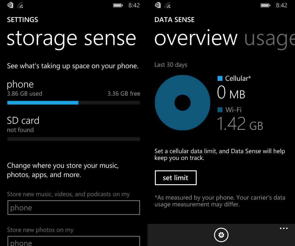 The Data sense app is now available on all Windows Phone 8.1 devices and basically it allows you limit the amount of and compress the data that your phone uses. The idea here is that data sense can help you to keep from hitting your data cap. For some people this will be really useful, but for others it will just be a fun little data usage counter. Either way it’s a nice app to have. Similarly the Storage Sense app allows you to control how much space your apps and data are taking up on your phone.