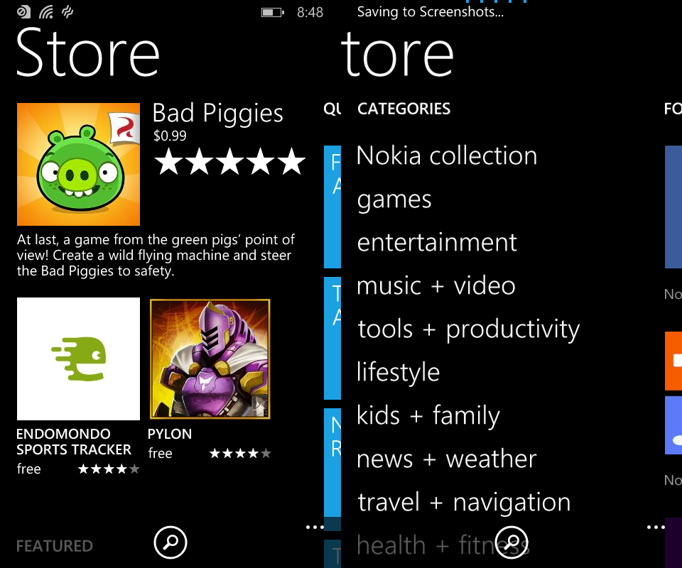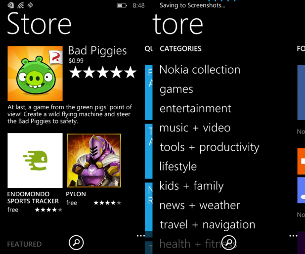 The Windows Store app has changed drastically with this update. It now offers very similar functionality to the Google Play store, but you have to navigate it differently. For the major categories of apps like ‘featured’, ‘for you’, ‘categories’, and ‘quick links’ you navigate through the Windows Store like it’s any other panoramic app. But for looking into specific categories you have to use the tiles in the ‘quick links’ section or the text-based links in the categories section. The update to the Windows Store will no doubt make app discovery easier for users.