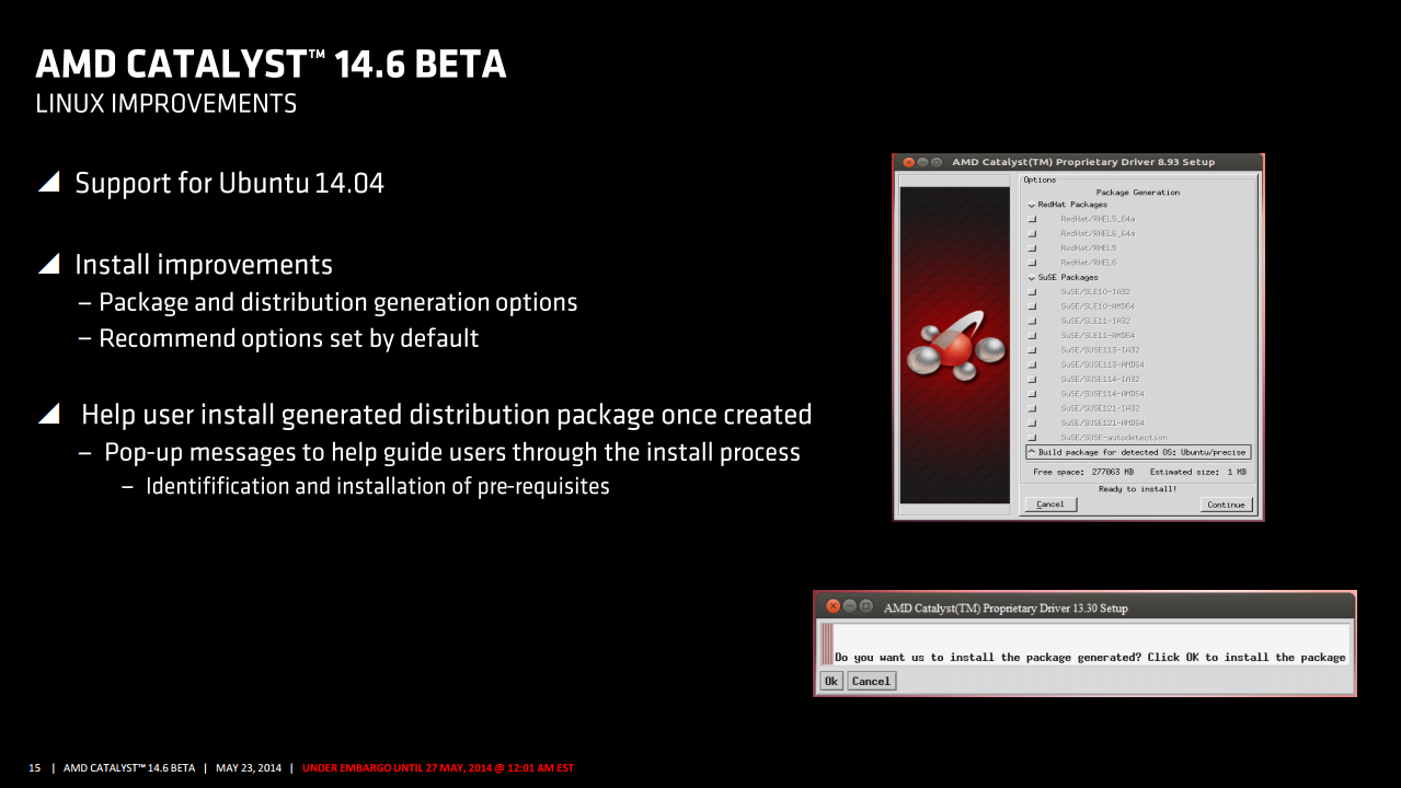 AMD did mention a couple of improvements for Linux users namely support for Ubuntu 14.04 and a more intuitive driver install process.