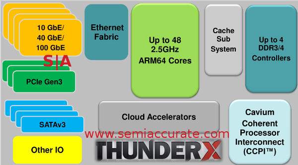 Cavium is upping the stakes in the ARM server SoC core count race with the new 48-core Thunder X chip. As SemiAccurate has been saying for years now, core counts are just a number if you can’t feed them and Cavium has that part down too.