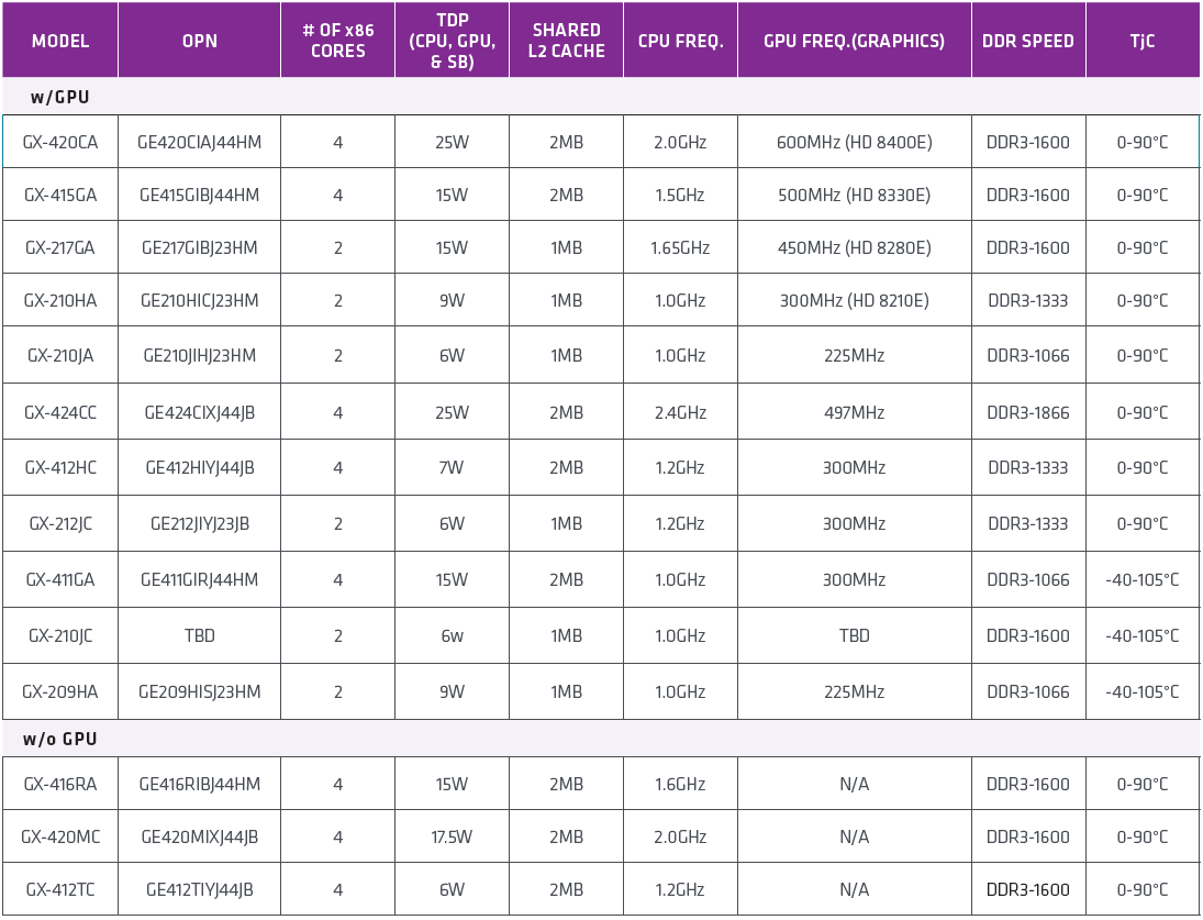 Yesterday AMD launched a new generation of G-series embedded SoCs. All of these new products are based on AMD’s Beema SoC which is an updated and optimized version of last year’s Kabini SoC. These new G-series parts have between two and four cores as well as clock-speeds ranging from one to two gigahertz. L2 cache sizes also range from one to two megabytes and there are actually two types of chips being launched as the G-series. We have Steppe Eagle which has a GCN GPU and Crowned Eagle which doesn’t have any GPU at all. Despite that major difference the TDP range for both chips remain the same at 5 to 25 Watts.