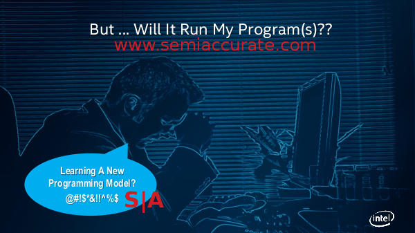 Intel is once again wasting electrons and oxygen with a new low in briefings, this time ostensibly about the Knights Landing Xeon Phi. There was a lot of empty hollow grand strokes but precious little if anything worth listening to.
