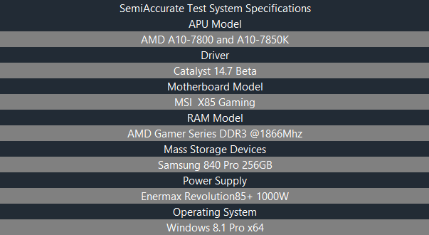 There you have it, AMD’s two 78xx chips perform almost exactly the same in their stock configurations. Perhaps there will be a bigger gap at 45 Watts but that’s a story for a different day. As it stands now, picking up an A10-7800 is a great way to get all the performance of a stock A10-7850K and save yourself about $20. Of course that at price point the A10-7800 is lined up right against the A10-7700K which has an unlocked clock multiplier. Thus its hard to make an argument in favor of buying an 7850K when you can get the same feature set from the 7700K or better power efficiency from the 7800 while paying a little less for both and retaining essentially all of the performance that the 7850K has to offer. AMD’s dekstop Kaveri lineup is small and rather homogeneous, and that’s not a bad thing for value conscious buyers.S|A