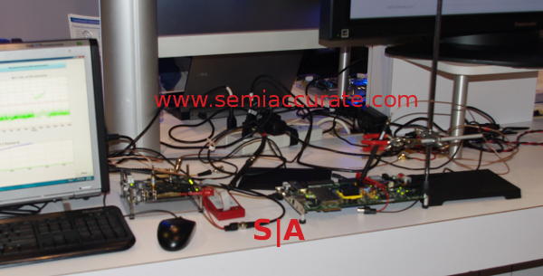 On the core side things are a bit more interesting. You can get a Rambus/Cryptography Research core as either a crypto accelerator for ARM based system or to implement on FPGAs. There is one of the cores implemented in the above demo and another without the protection running the normal crypto routines. Rambus was sniffing both to show off what their IP was capable of doing.