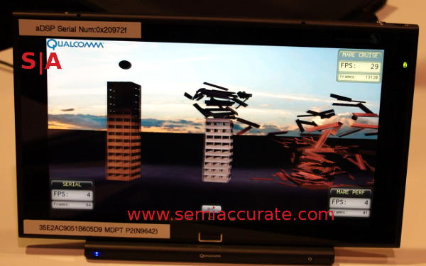At the moment MARE is sort of open, mainly open to devs but not open as in open source free as in freedom. You can download a copy of the SDK here (Note: Account needed) and the Qualcomm dev site is full of examples, white papers, and all the usual things to bring you up to speed on a new API. Although it currently requires a Qualcomm CPU, the people SemiAccurate talked to at Techcon strongly intoned that it would become a fully open API as it matured, at the moment it is still too early to do so. Once MARE is closer to fully baked, if Qualcomm really opens it up, free as in freedom and free as in beer, it could be a really interesting general use API that does a lot for mobile power use.