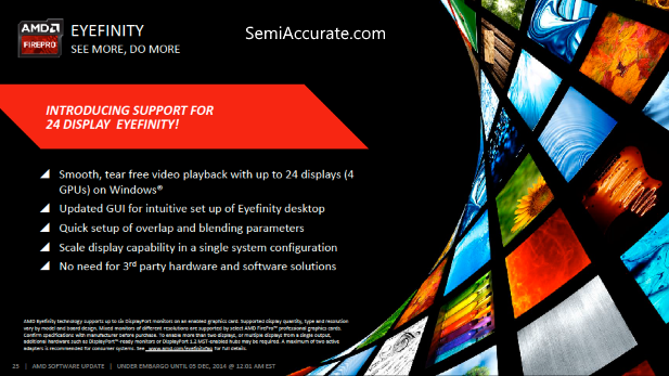 Similarly AMD is now supporting the acceleration of up to twenty simultaneous video streams. For some applications this could be a game changer, but it’s hard for me to get all that excited about better video surveillance systems.