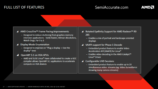 For Linux lovers you can take heart in the knowledge that AMD has added support for accelerated video decoding with the VAAPI through its driver. For all our readers that are using Linux-based HTPCs this should make things a bit easier.