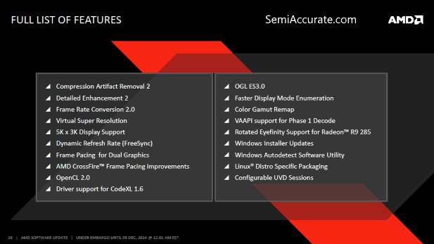 Here’s the full list of twenty features that AMD is delivering with this Omega driver. We’ll go through each one in more detail in the rest of this article.