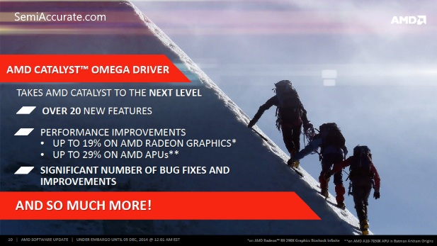 AMD’s Catalyst Omega driver is easily the biggest driver update I’ve ever had to write-up. Looking at it based purely on the sheer number of new and improved features it offers it’s clear that it’s also one of, if not the biggest driver update that AMD has ever released. AMD says that we can look forward to seeing one update on the same scale as this Omega update per year going forward. This is great news as it gives everyone something to look forward to now that AMD is releasing drivers on an as need basis. This is exactly the kind of forward momentum and big feature drops that AMD needs to prove that not only are its drivers good, but that they might even be better than Nvidia’s.S|A