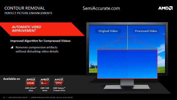 Finally we come to AMD’s Contour removal technology which removes common video compression artifacts. Yet another one of AMD’s video play back enhancement technologies.