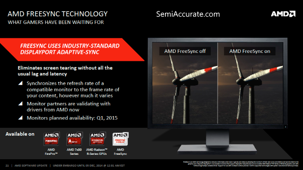 FreeSync is finally here, or at the least is now officially supported by AMD’s drivers. Almost a year after AMD showed the first demos of its Gsync competitor we can finally see that they are going to bring it to market. FreeSync and Gsync are the biggest thing to happen to PC gaming in the last decade which is why it’s so cool to see GPU vendors and monitor manufactures alike hopping on board the train to smooth Vsync-less displays.