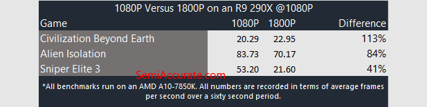 We tried out AMD’s VSR in three games Aliens Isolation, Civilization Beyond Earth, and Sniper Elite 3. After checking a box to enable VSR in AMD’s Catalyst control center we were off and additional resolution immediately became available in these games. Our graphics card was an R9 290X and performed well in these games. Save for Civilization where it was heavily handicapped by the game’s CPU limited nature which became an issue for the A10-7850K that was backing up our R9 290X.