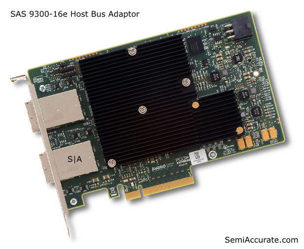 Back in Early December Avago launched a couple of new 16 port 12 Gb/s SAS Host Bus Adaptors (HBAs) to round out its 9300 series of products which also contains 4 and 6 port options. The new 9300-16i and 9300-16e HBAs are good for nearly 2 million IOPS of performance. For those counting at home Sandisk’s SAS 12 Gb/s SSDs top out at about 190 thousand read IOPS. This means you can hook up about ten or so SSDs before you saturate this HBA. And for those of you who aren’t counting and are just wondering what an HBA is, then the easiest way to describe it is to call it a storage array controller.