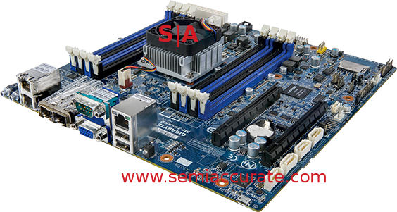 Things get interesting when you read the spec sheet, a quad-core A15 called AL5140 running at 1.7GHz is pushing all the bits around. This A15 is from Annapurna Labs, an Israeli startup that was purchased by Amazon in January. Their web site is about as useful as mainstream tech media, pretty but devoid of actual content. At least we know who is going to be buying the D120-S3Gs from Gigabyte. Other than that it has one DIMM slot, 2x10GbE, 2x1GbE, an ASpeed 2400, and lots of SATA ports. Obviously there is hardware RAID5/6 on the AL5140, an A15 is going to go all of nowhere fast trying to push 20Gb of RAID computations on its cores.