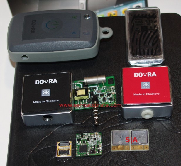 The idea is simple, put either a traditional Geiger-Muller counter or Intersoft’s own internally developed silicon sensor called DoRaSi on a card, load the right app on your phone, and off you go. It comes in four versions at the moment, Do-Ra.Q, i.Do-Ra, Do-Ra.Uni, and Do-Ra.Ultra, each with different form factors, sensors, and host OS support. A sampling of the devices, boards, and sensors is below.
