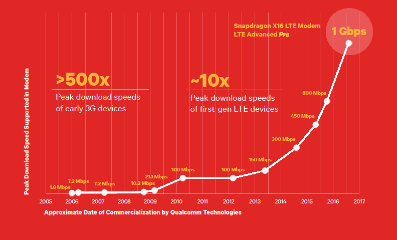 UPDATE 2/11/2015 @ 1:44 PM PST: Qualcomm has confirmed that the X16 modem does not top out at 0.98 Gbps, but rather actually does hit the 1 Gbps mark. The 0.98 number cited above was from our briefing with Qualcomm a few months ago.