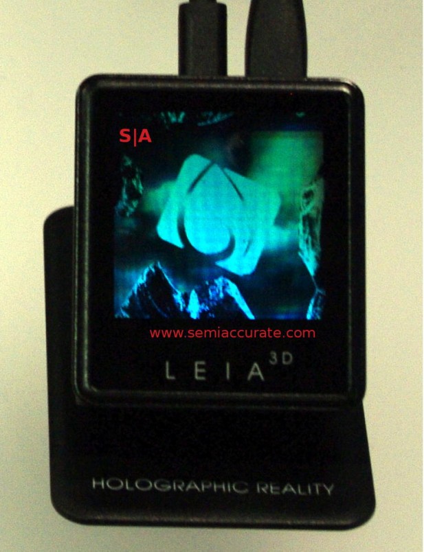 Speaking of thinking outside the box we come to LEIA 3D’s display, a glasses-free holographic display. SemiAccurate saw a pre-production LEIA display at Siggraph last year and it works quite well, bright and really 3D. The display is limited to 200×200 pixels per view with 64 views possible per image, more than enough to simulate a full 3D hologram. It works by using microlenses/prisms that change the pixels viewable depending on the angle. It works well and seamlessly, at least during the two times I saw it.