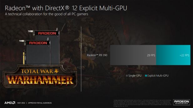 Today AMD is releasing it’s Radeon Software Crimson 16.5.3 beta driver update with support for the latest Total War game: Warhammer. This is a DirectX 12 game that makes use of that API’s explicit multiGPU, asynchronous compute, and multithreading features. Of course AMD has invested heavily in working with the Creative Assembly, the game’s developer, to upgrade their old DirectX 11 engine to support DirectX 12 with an eye towards smooth frame delivery and good performance.