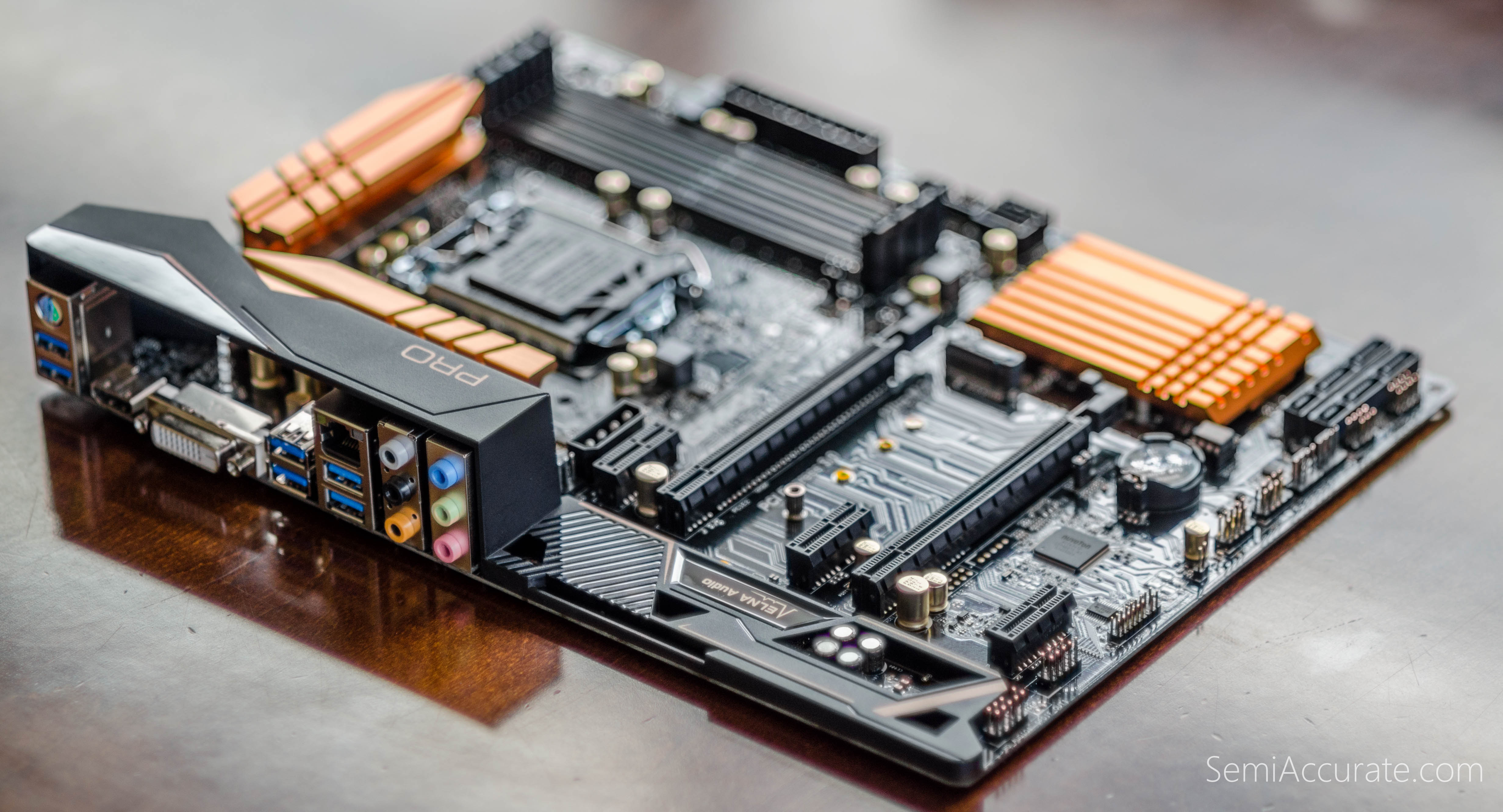 The combination of brushed copper with a tactful semi-gloss PCB is both understated and extremely appealing due to its simplicity. Unlike a lot of other motherboards on the market the Pro4, neither appears neither boyish nor utilitarian and has a design that will age with grace.