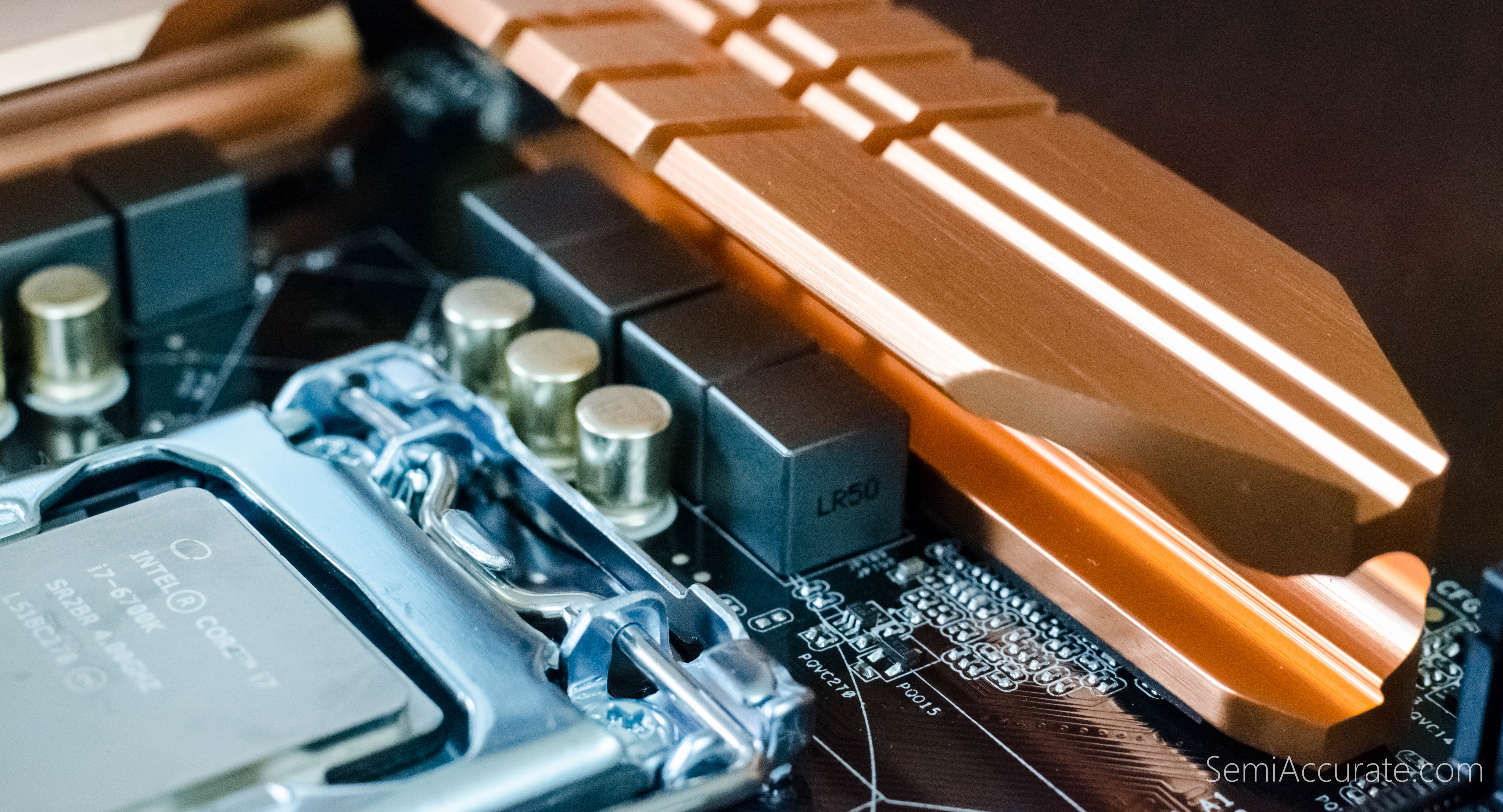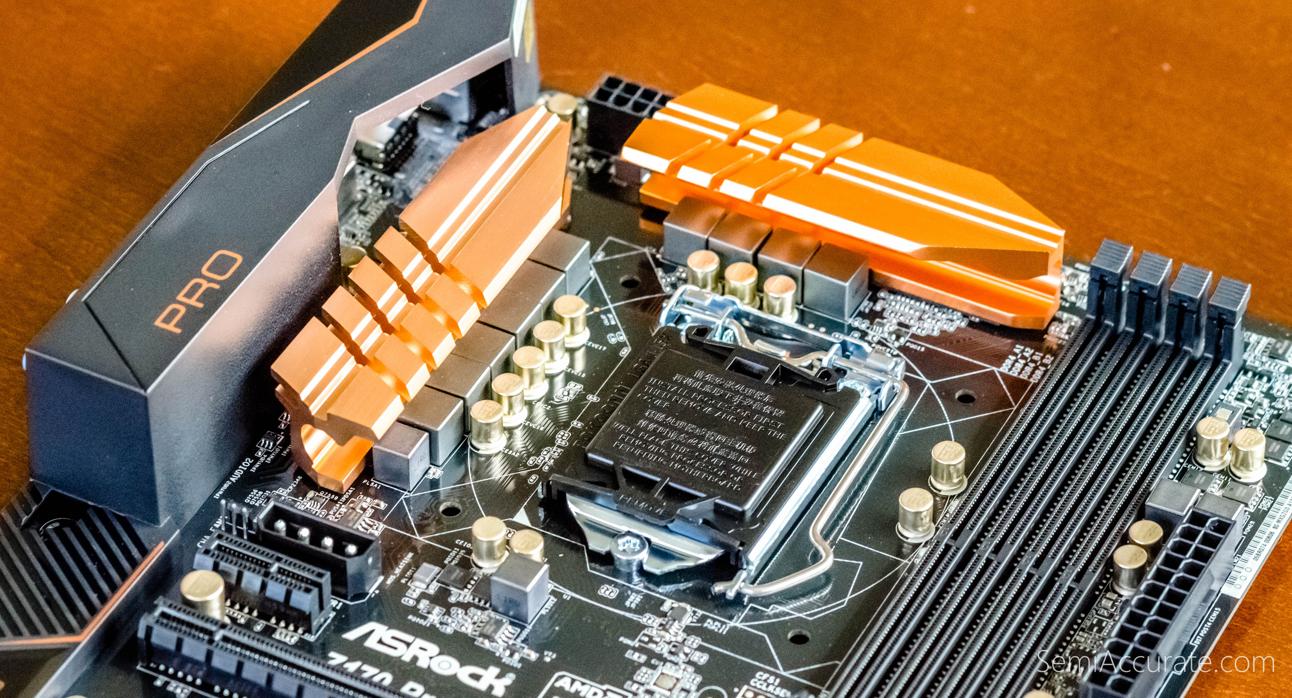 The Z170 Pro4 has ten phase power delivery which is more than adequate to support the needs of our i7-6700K. I could see the volume of space surrounding the CPU socket being a concern for people interested in mounting very large rifle or tower-style CPU coolers. Our Corsair H220 closed water cooling unit mounted without any clearance issues.