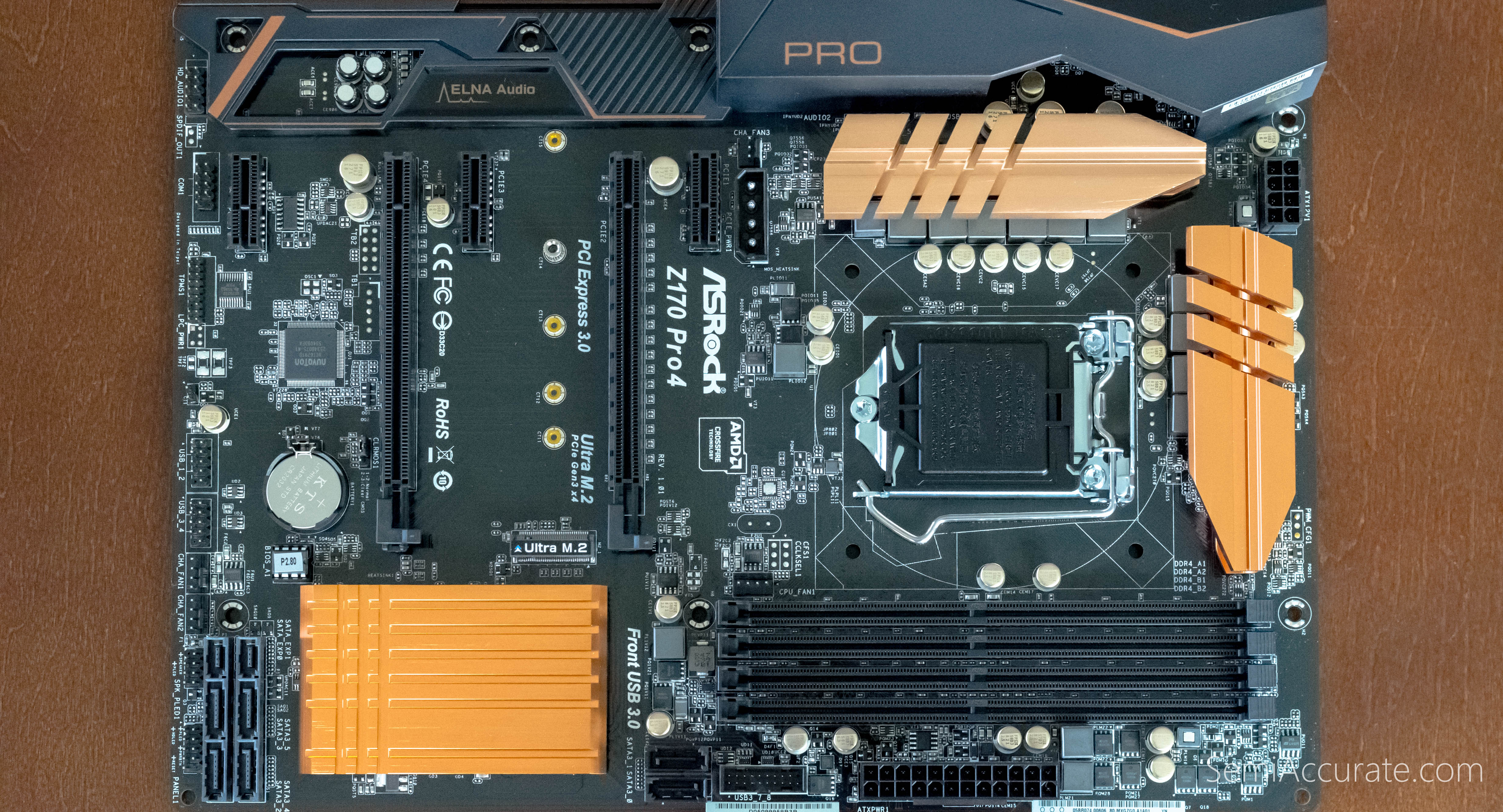 The Pro4 is a full ATX motherboard. This is a form factor that’s fallen out of favor lately in lieu of mATX and ITX designs. There is an mATX variant of this design dubbed the H170M Pro4 which on the outside appears quite nice.