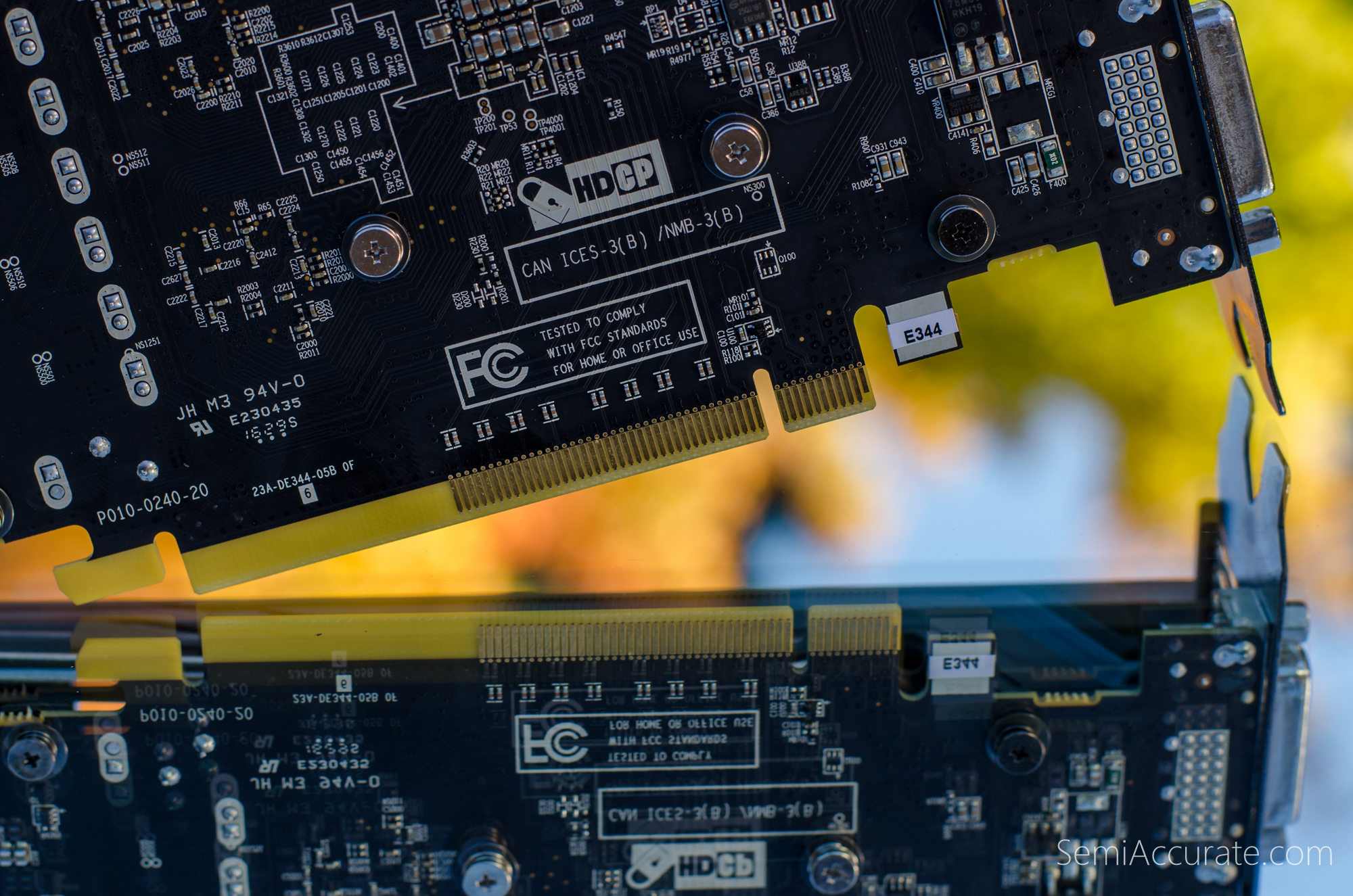 Perhaps the strangest thing about AMD’s Radeon RX 460 is that I have yet to see a version of it with a full PCI-E x16 electrical pin out. While our sample shown above has the PCB space for a full 16 lane connection only contacts for 8 lanes are present. Given the amount of bandwidth that can be pushed over a PCI-E gen 3 lane and the limited performance of the RX 460 it seems reasonable to limit it to an 8 lane interface especially when you consider that this design choice probably decreased the bill of materials cost.