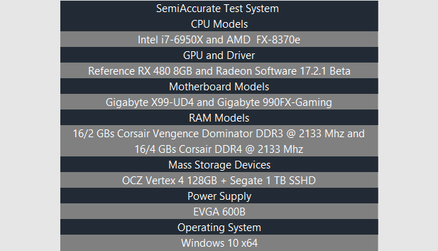 To demo this scheme let’s compare two well-known CPUs: Intel’s i7-6950X and AMD’s FX-8370e. The support components in our testing will remain the same with only the CPU, motherboard, and memory changing between test runs.