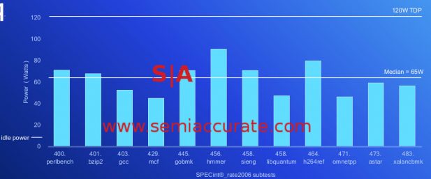 One more point to talk about, average power. The 2460 is a 120W SoC but on SPECint_rate2006 it pulls about half that, 65W median on an 8W idle. While they didn’t put up the Intel numbers for an equivalent CPU, we would expect Intel to be in the same utilization ballpark as a percentage, aka much higher average. Then you add in the chipset for another 10W or so and Qualcomm has the clear advantage. Trying to get technical information out of Intel lately is about as productive as training a brick so I don’t think we will ever have hard numbers here. Also think back to turbo, if a Centriq pulls ~65W on SPEC, it is probably turboing to 2.6GHz for the majority of the run.