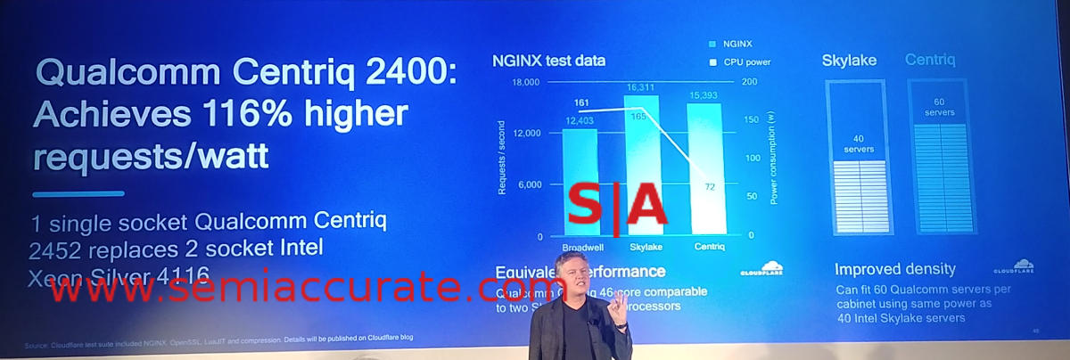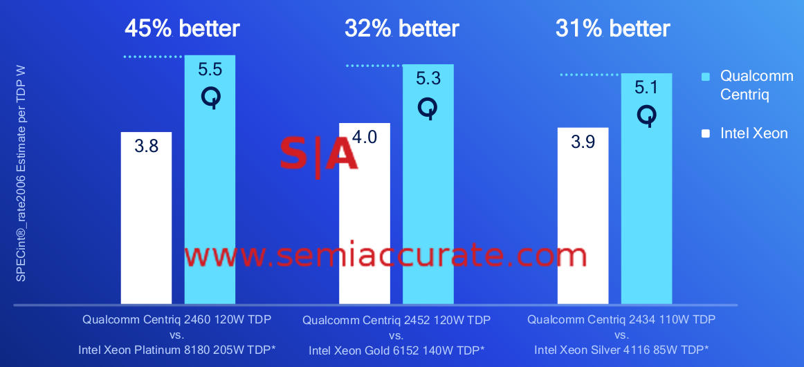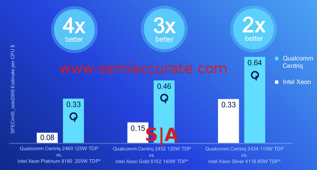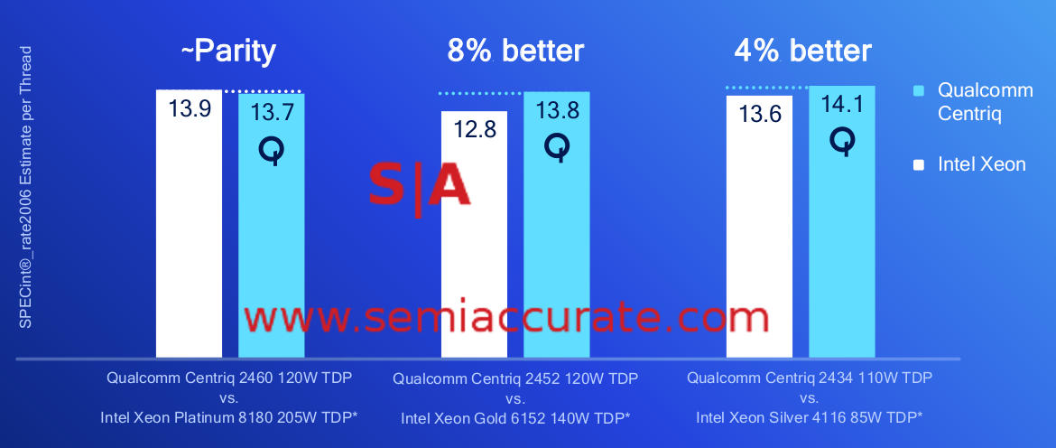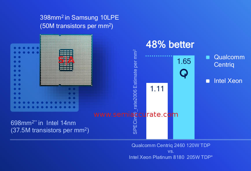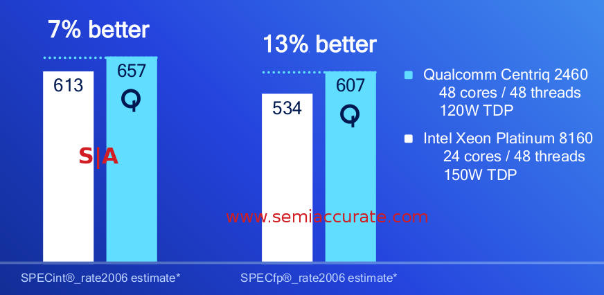Last week Qualcomm gave us numbers for their new Centriq 2400 line of CPUs and they are better than SemiAccurate expected. More importantly Qualcomm comes uncomfortably close to Intel’s performance in the meat of the market.