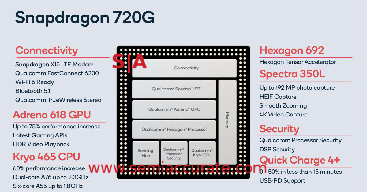 Update January 31 @ 4:30pm: Qualcomm points out that the Snapdragon 720G does not have a separate SPU, it has the same pre-SPU security features as the rest of the Qualcomm SoC line.