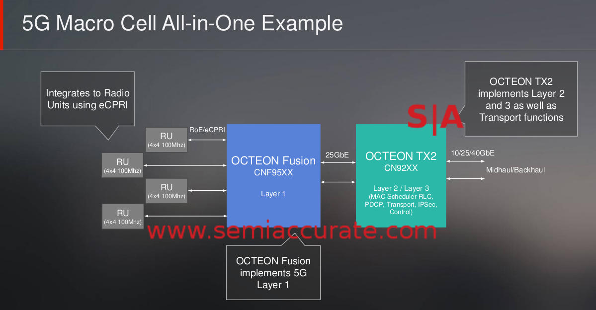 If you are using 5G in the west, there is a high likelihood that you are using a CNF95xx. Marvell says that they have been in production and deployed from a “Tier 1 OEM” since early-2019. Based on conversations at MWC2019, SemiAccurate thinks this is Samsung. In any case Octeon Fusion CNF95xx SoCs have been deployed in the wild for almost a year and the second generation parts with customer specific additions are imminent.