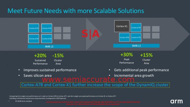 No we weren’t joking, you can put an X1 into an Dynamiq cluster in a 1+3+4 setup, presumably you can add more than one X1 if you want too, and off you go. The new core is obviously much larger than the A78 it replaces but that +15% area includes an additional 512K of L2 and 4MB of L3 cache too. In short the addition of the X1 is far from free, 15% is a serious manufacturing cost but if it makes the device feel snappier in the hands of a user it could well be worth it. If you wanted to be pedantic you could ask what else one would do with all those transistors on a 5nm process, more dark silicon isn’t as meaningful an advance.