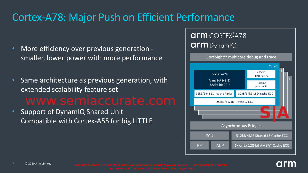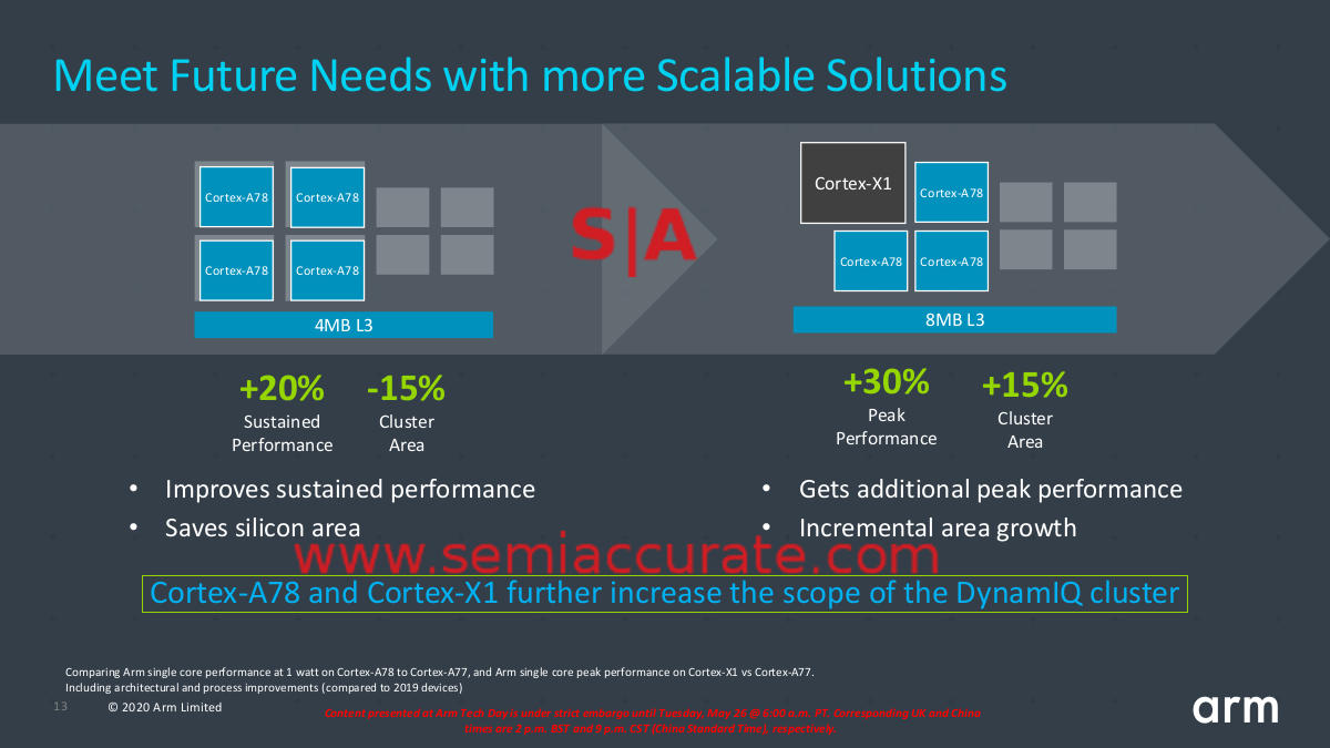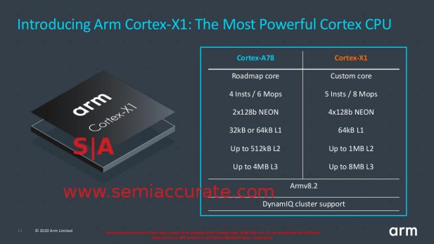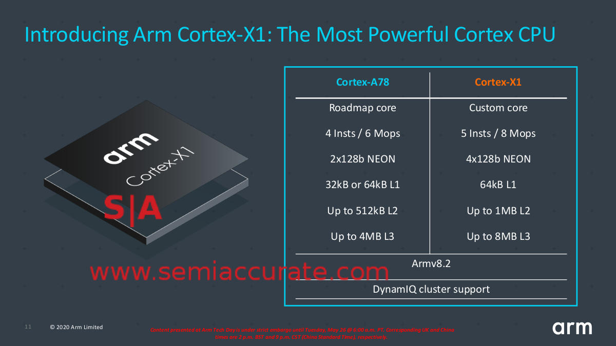 The two new cores released today are the expected Cortex-A78 and the unexpected Cortex-X1. A78 is the successor to last year’s A77 but the X1 is a new line, more of a successor to the concept of customer modifications than any particular CPU. Lets take a look at both of these cores starting out with what each is and isn’t.